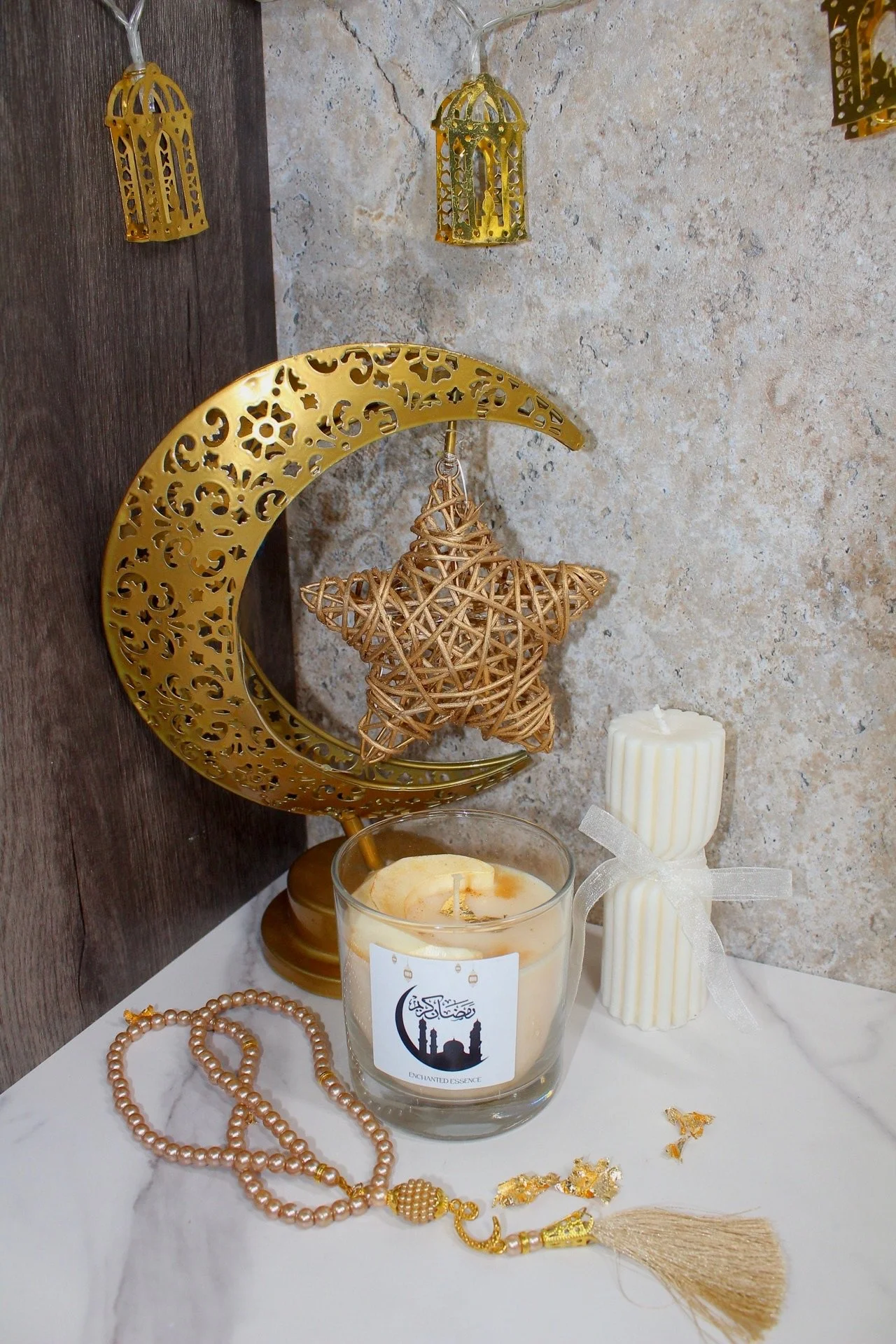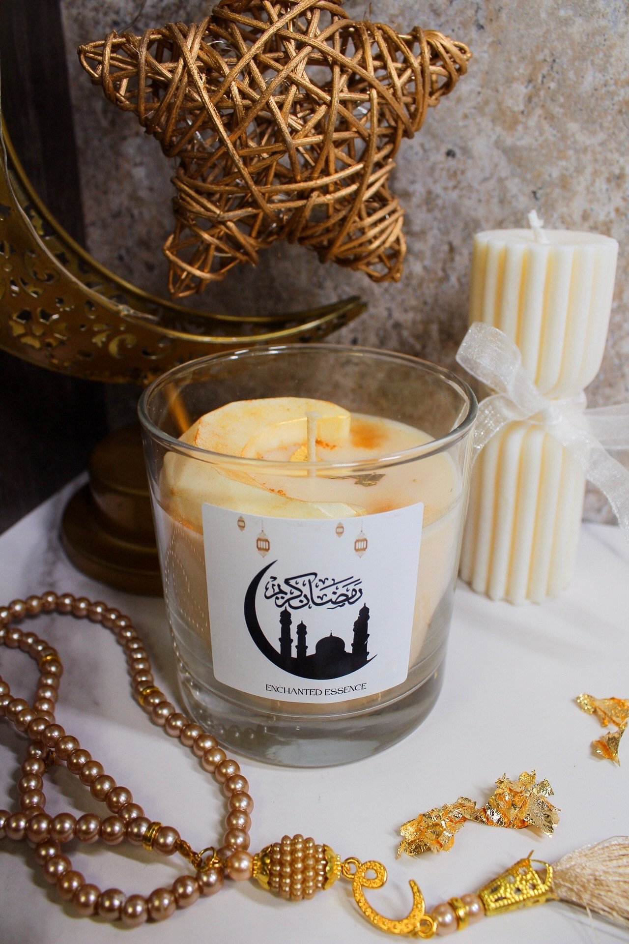 Brighten your Ramadan with our beautiful collection of four unique scents. Our soy candles bring warmth and peace to your home, each featuring a lovely gold moon representing the sacred crescent. With stylish decor, each candle captures a special festive spirit. Enjoy the mix of tradition and modernity as each scent shares a story, inspiring joy and reflection. Celebrate this meaningful season with delightful aromas that touch your heart.